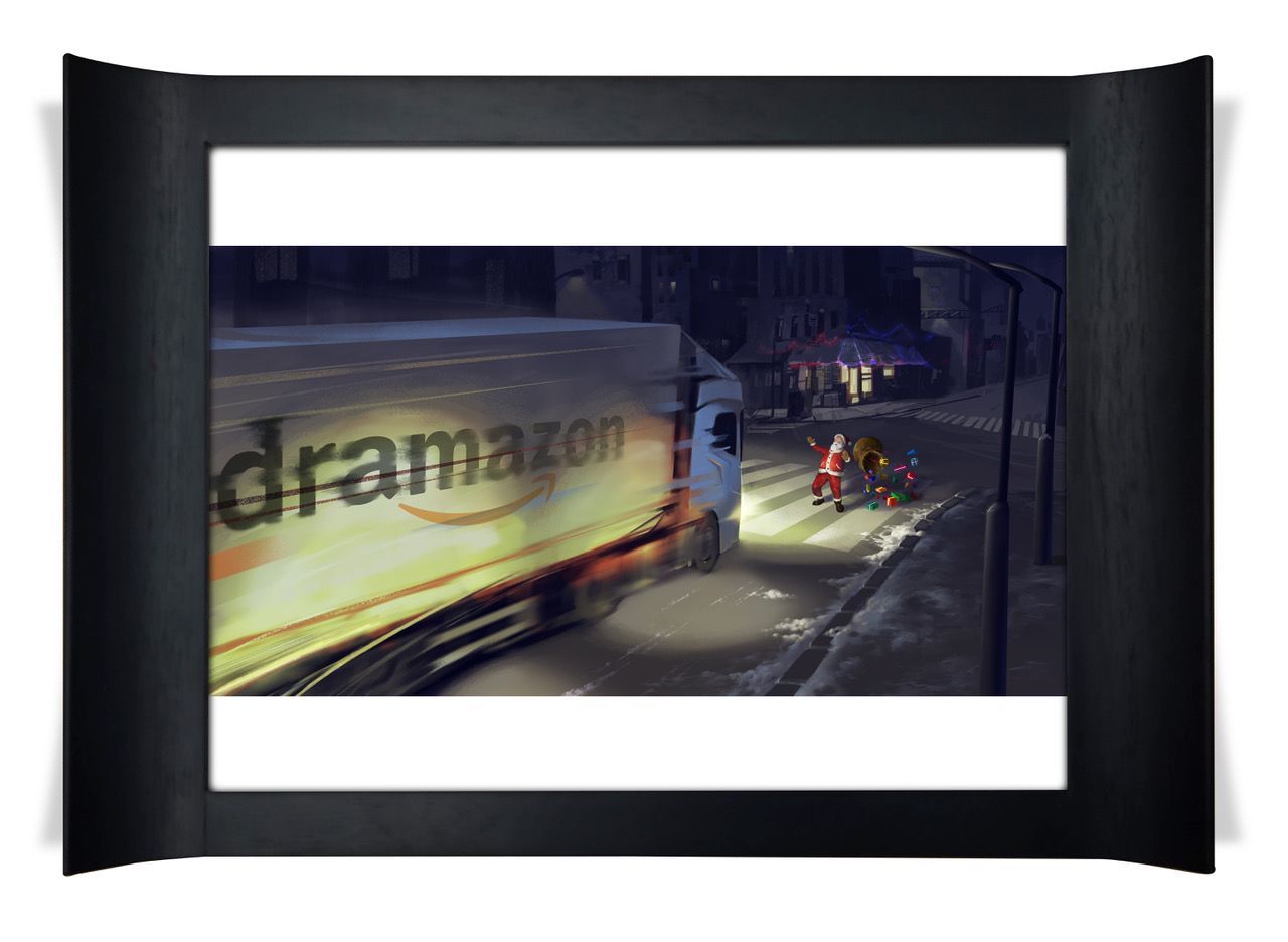 Ci stiamo avvicinando al Natale. A questa festività ha dedicato un’opera caratterizzata dall’amara ironia che permea molti dei suoi lavori… Com’è nata l’opera Dramazon?