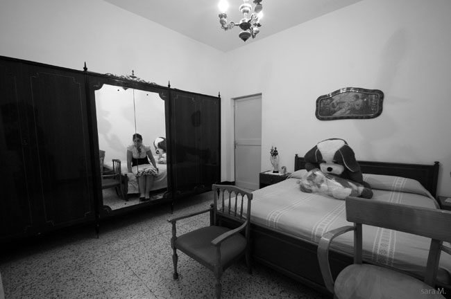La mostra, curata da Olivia Spatola e Manuela Valentini, è un viaggio nella memoria, un’indagine dell’inconscio, del sogno e della fantasia. Un percorso che l’autrice intraprende utilizzando lo specchio come metafora dell’introspezione: un racconto attraverso le immagini della propria intimità e di ricordi personali che divengono universali unendo al romanticismo una sottile malinconia che permea il racconto. L’ambientazione domestica delle foto diviene emblema del femminile, della famiglia, luogo di protezione, ma anche teatro della messa in scena dell’amore, del dramma, del decadimento e dell’abbandono.