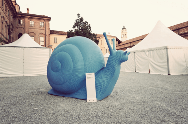 Le opere installate nei luoghi strategici della città appartengono alla collezione della Cracking Art REgeneration, un gruppo di spicco nel panorama artistico internazionale, che dal 1993 attraverso l’uso innovativo di un materiale povero quale la plastica opportunamente rigenerata, crea opere d’arte con particolare sensibilità nei confronti dell’ambiente e della natura. Tra tutte le opere realizzate sono state scelte sei grandi chiocciole di plastica colorata, installate negli spazi urbani durante l’evento di Cheese e tante altre di medie e piccole dimensioni che saranno ospitate nei locali de Il Fondaco, della Galleria San Giovanni e della Premiata Libreria Marconi dal 16 settembre al 16 ottobre 2011.